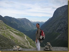We had about half a day in Åndalsnes and the visitor center had several leaflets outlining the best hiking trails through the Romsdalen Alps, a string of mountains enveloping Åndalsnes. It seems there are 200 hiking trails there, unfortunately not very well marked! I guess Finland had spoilt me as in Rukka the variants of the trails were so well marked.